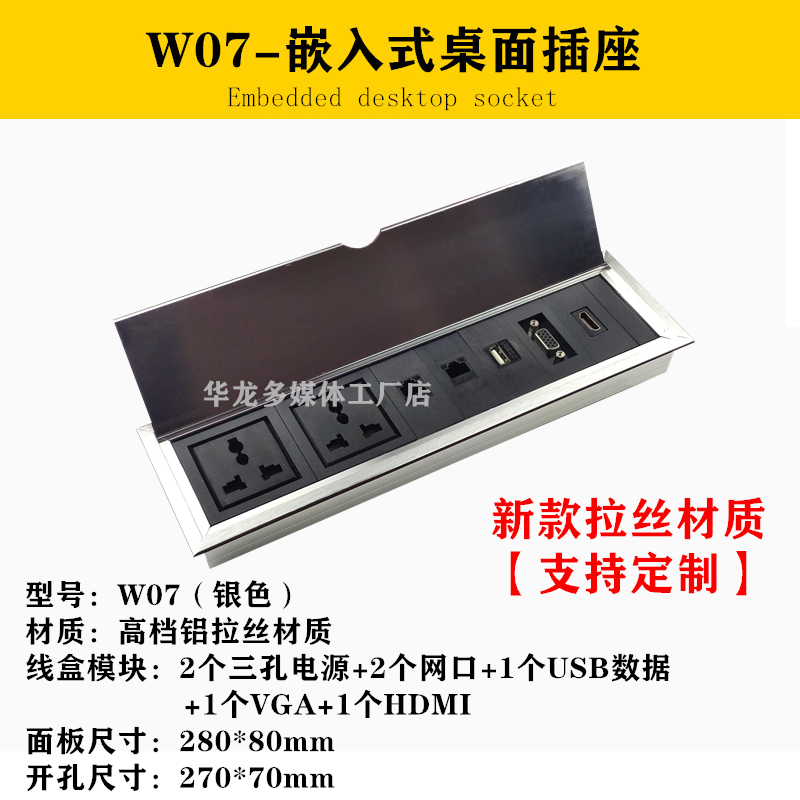 Countertop office conference table Multi-function cable box Information power plug board Multimedia desktop socket embedded drawing