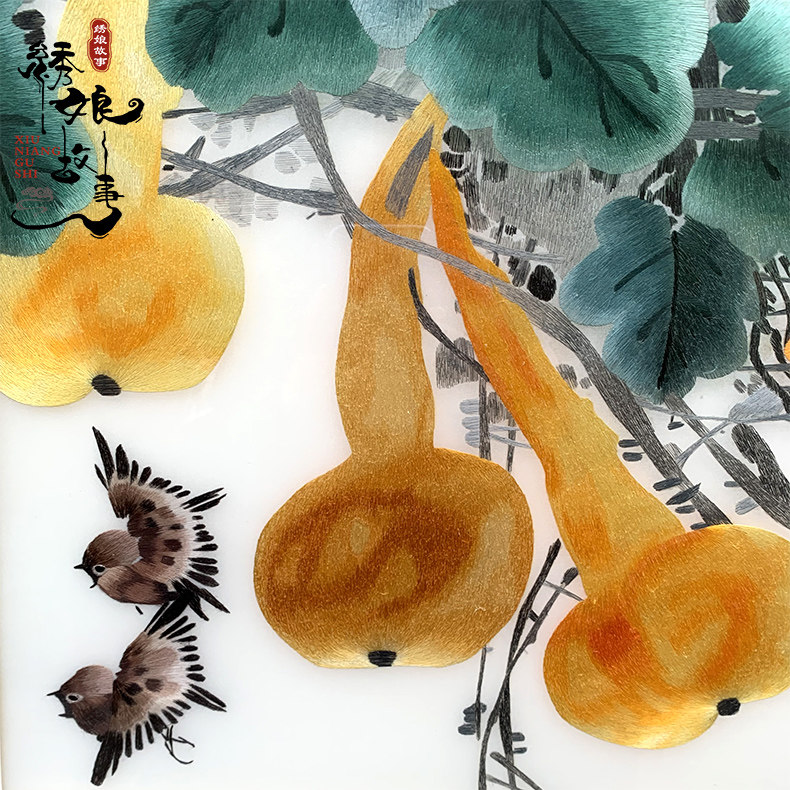 Su embroidery finished product hanging painting 1-4 silk genuine silk embroidery field garden fruits and vegetables Flowers Birds Autumn Interesting Living Room Dining Hall Embroidery Painting