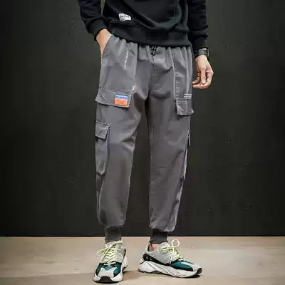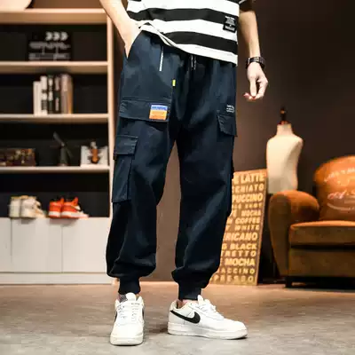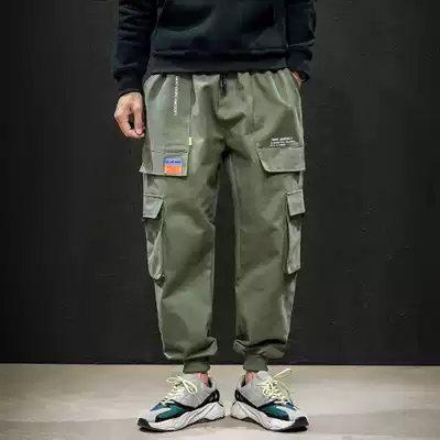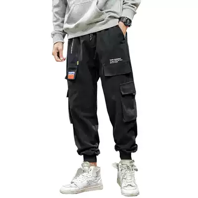 Functional style overalls men's teen dark black autumn trend brand fat man large size loose-legged casual long pants