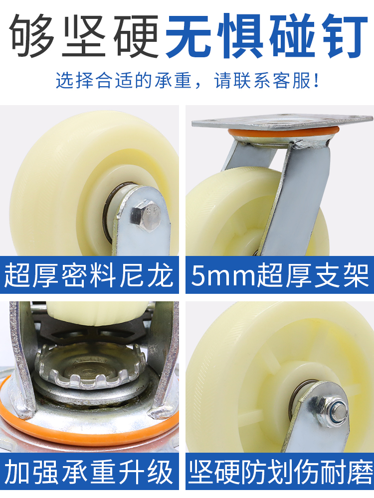6 inch universal wheel Heavy duty nylon wheel 458 inch flat trolley wheel with brake steering directional trolley caster