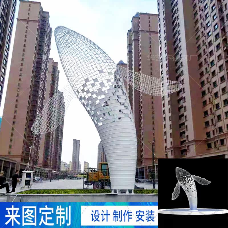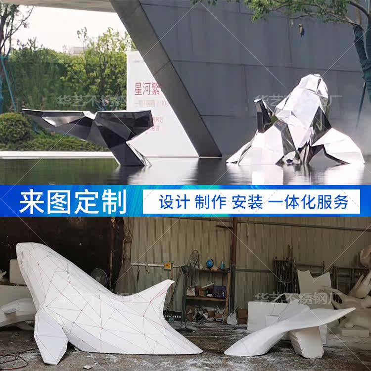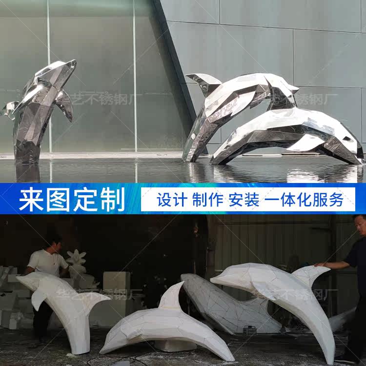 Large Stainless Steel Sculpture Custom Whale Styling Mirror Stainless Steel Dolphin Fish Group Sculpture Model Kunpeng Landscape