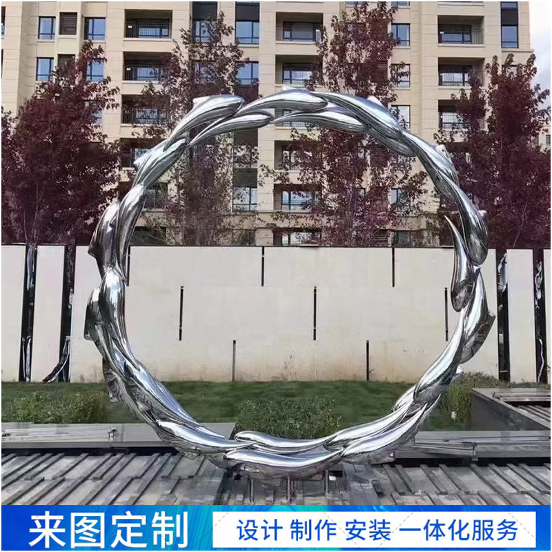 Forged Mirror Sculpted Hollowed-out Sculptures Three-dimensional Design Modeling Fish Group Landscape