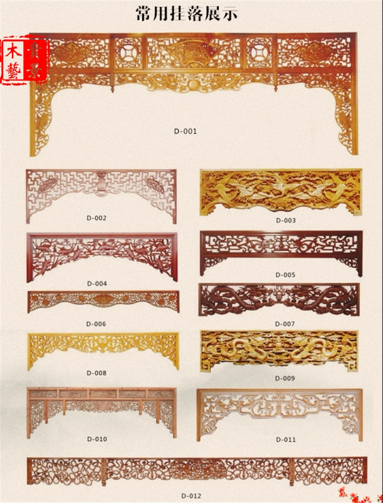 Dongyang wood carvings Chinese hollowed-out flower lattice solid wood hanging imitation ancient door head decorative gangway Pass door lintel corner flower partition