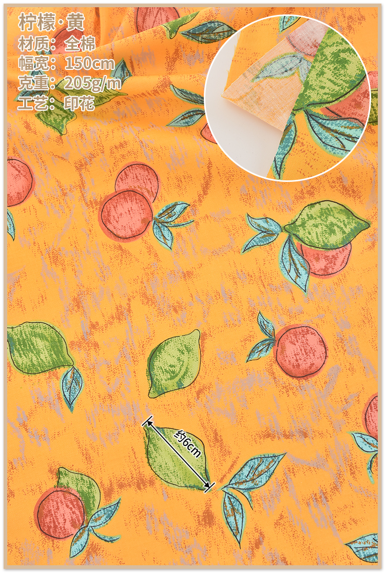 Small pasta fabrics pure cotton hand-painted cartoon fruit lemon fabric clothes dresses dresses tablecloths handmade L