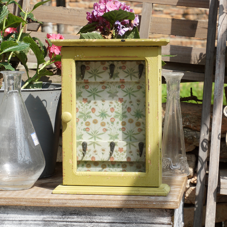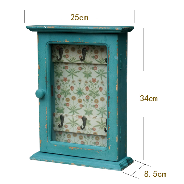 French country old solid wood key box Vintage damper on the key storage box Wall cover box decoration