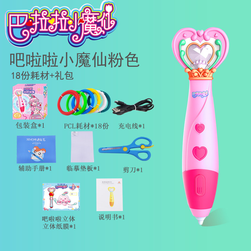 Balala little magic fairy 3d printing pen 3d three-dimensional children's painting consumables will become magic stroke pen magic graffiti pen cheap student 4 low temperature wireless charging ratio