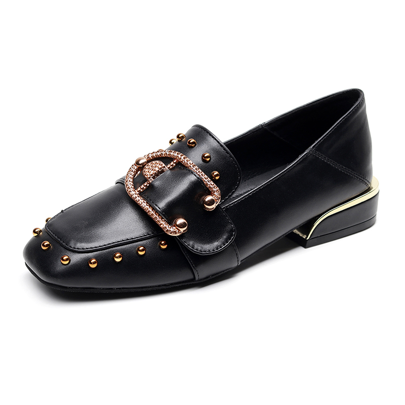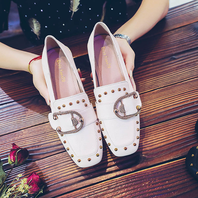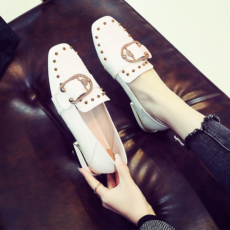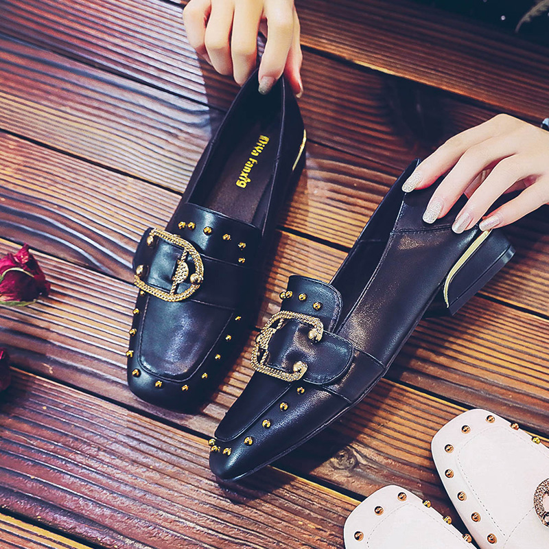 Hong Kong large size women's shoes 2021 autumn new Doudou shoes women's soft leather loafers flat retro square shoes women