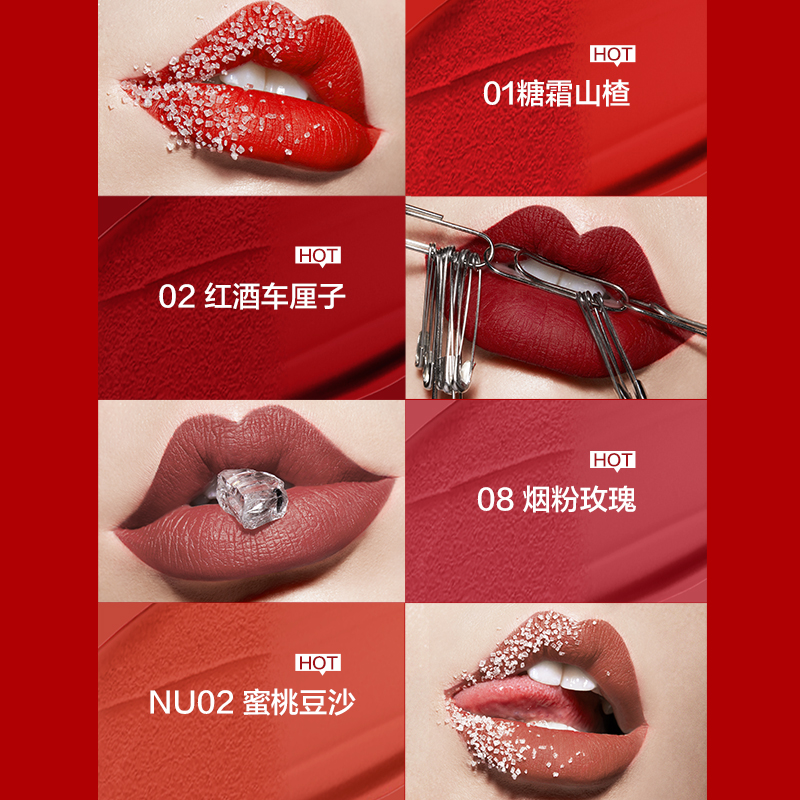 Mei Bilin new york Light Fog Lip Glaze Red Wine Cherry 02 Red Brown Matte Velvet Lipstick Long Term Frost Hawthorn 01