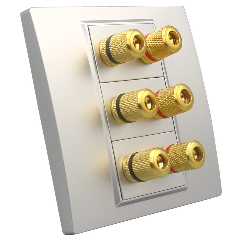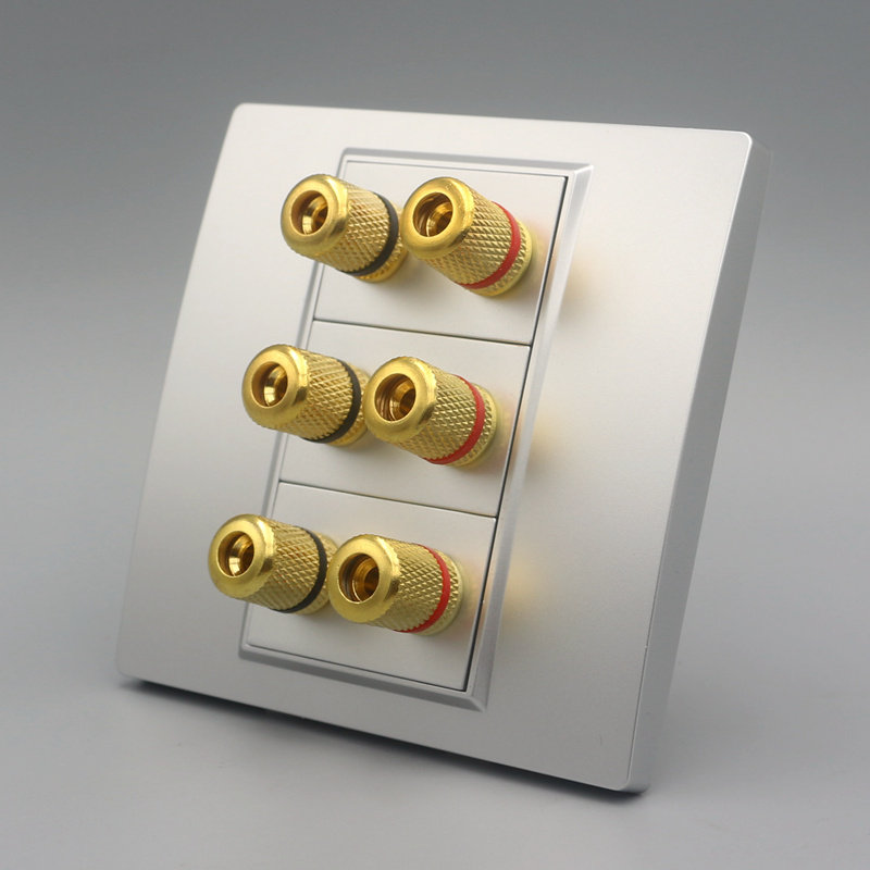 Three-digit six-head audio socket silver 86 wall dark decoration home 6 binding posts audio 6 head speaker panel
