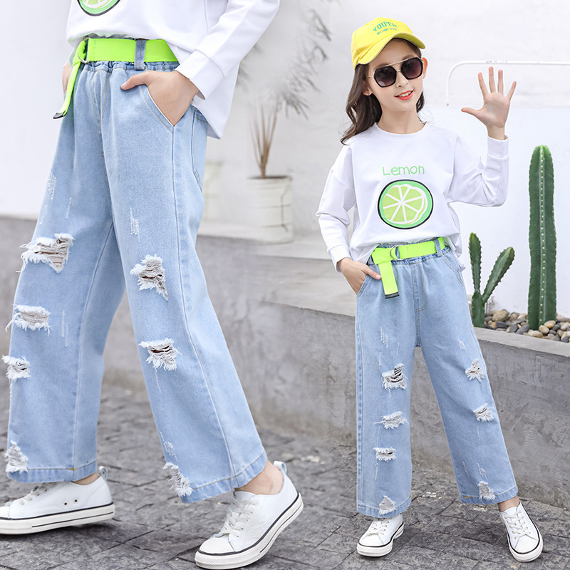 Girls' wide-leg pants and jeans 2021 autumn new fashion style loose Korean version of the big boy's western style children's pants