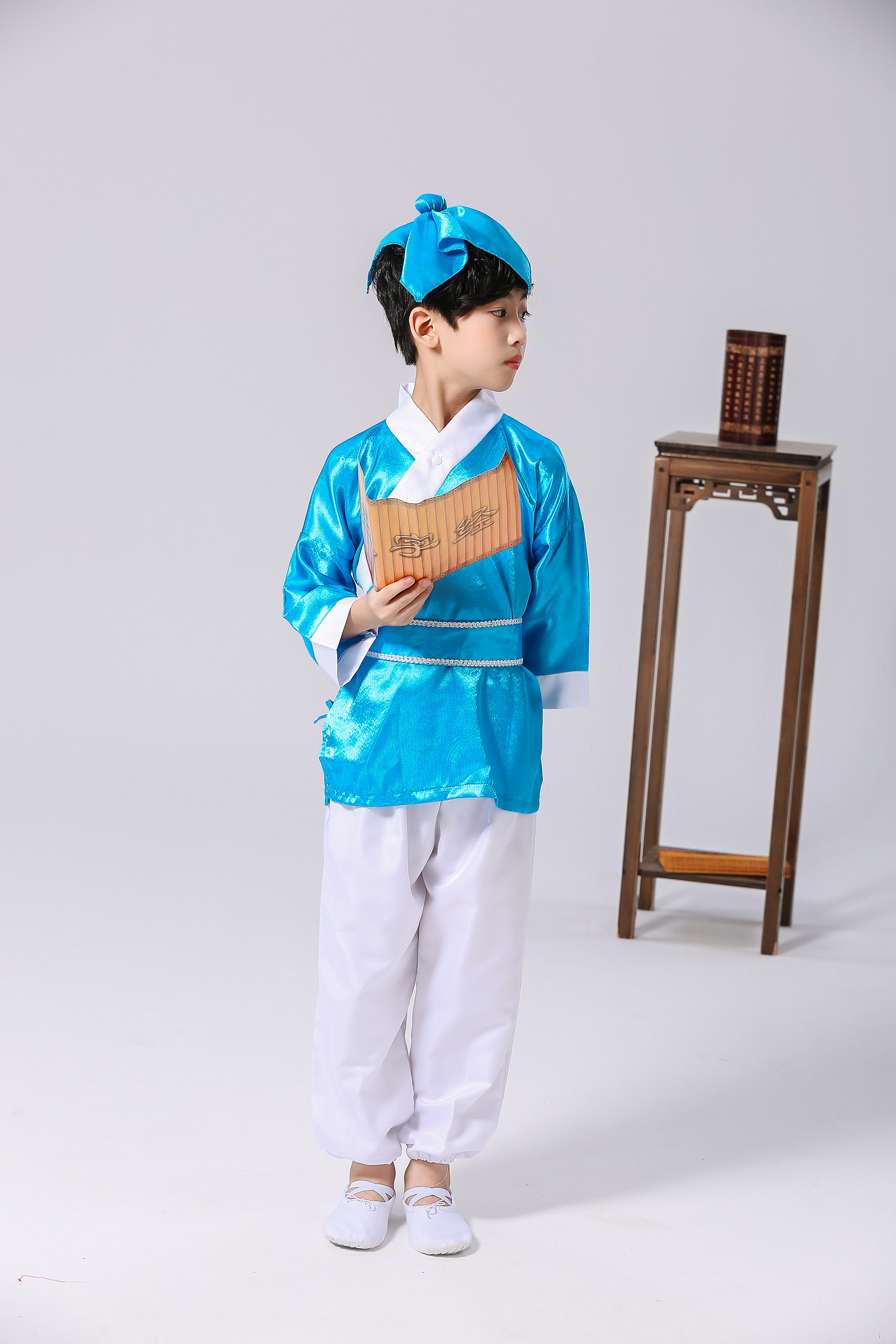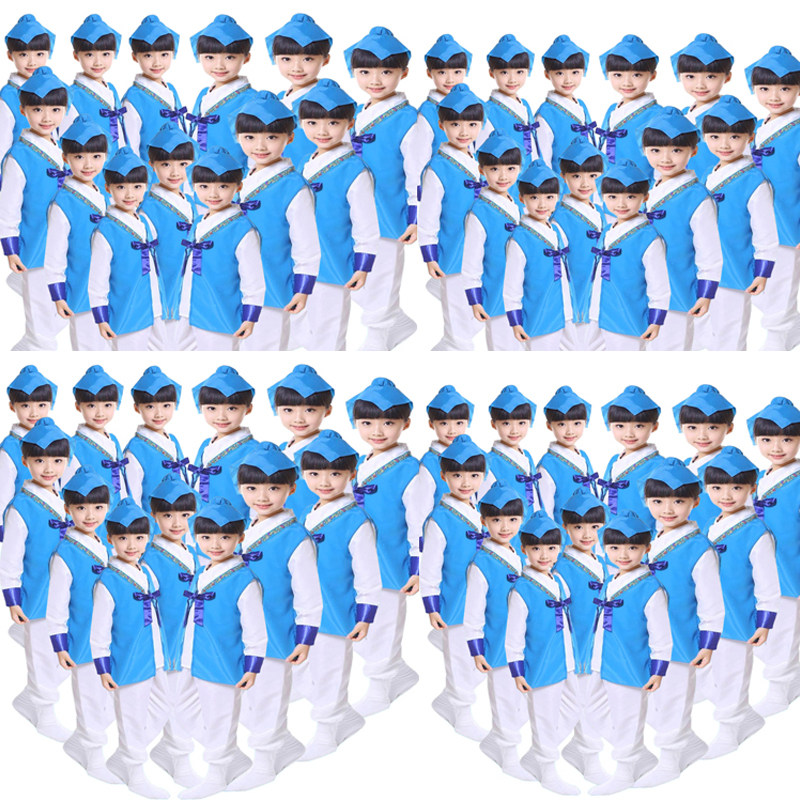 Children's book children's ancient clothes 61 acting out of three words through the Chinese school Han serve female toddlers to recite the performance costumes