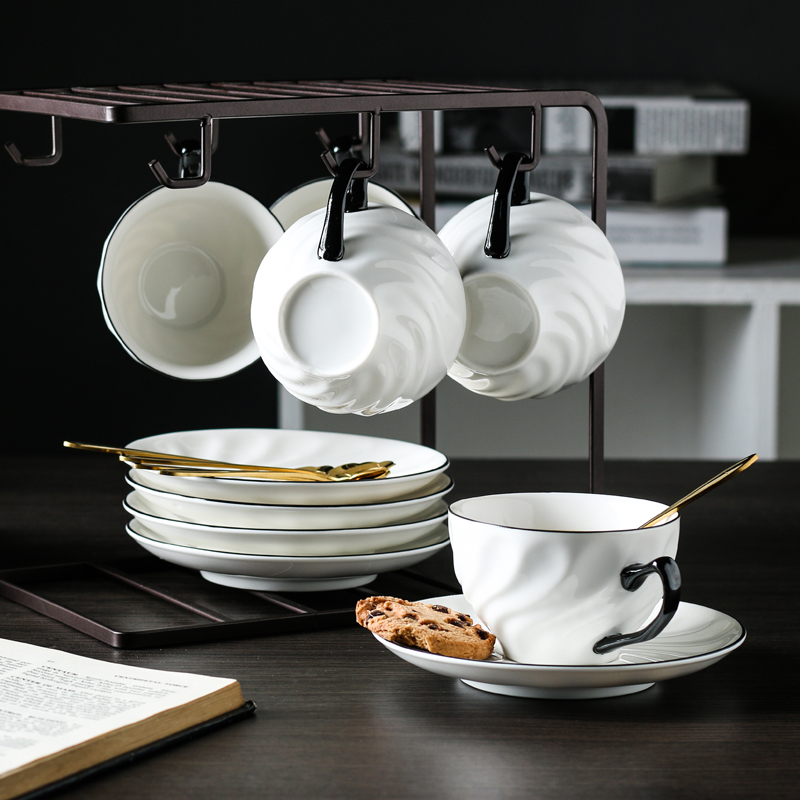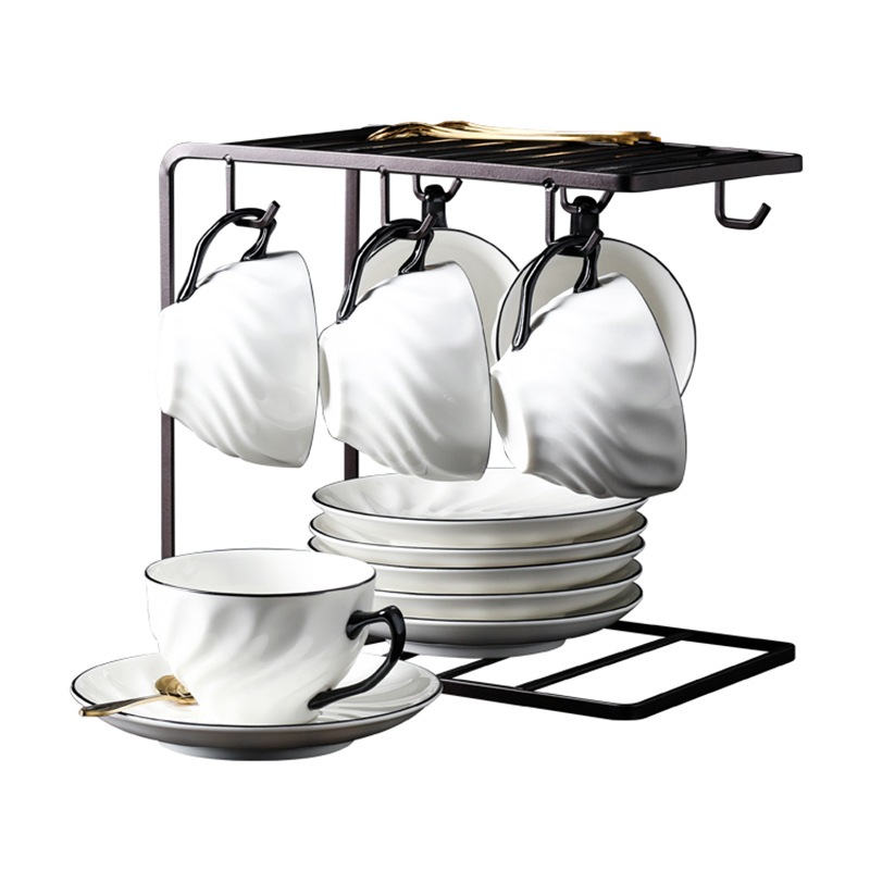 TM-Six cups and saucers gold spoon with silver edge ribbing and C stand TM-Pink lover rib six cups and saucers gold spoon and C stand TM-Blue lady rib six cups and saucers gold spoon and C stand TM-National color Tianxiang