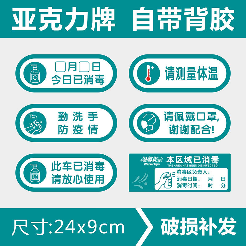 XD-01 today has been sanitised XD-02 Please measure body temperature XD-03 diligent handwashing XD-04 wearing face mask XD-05 This car has been sterilized XD-06 This area