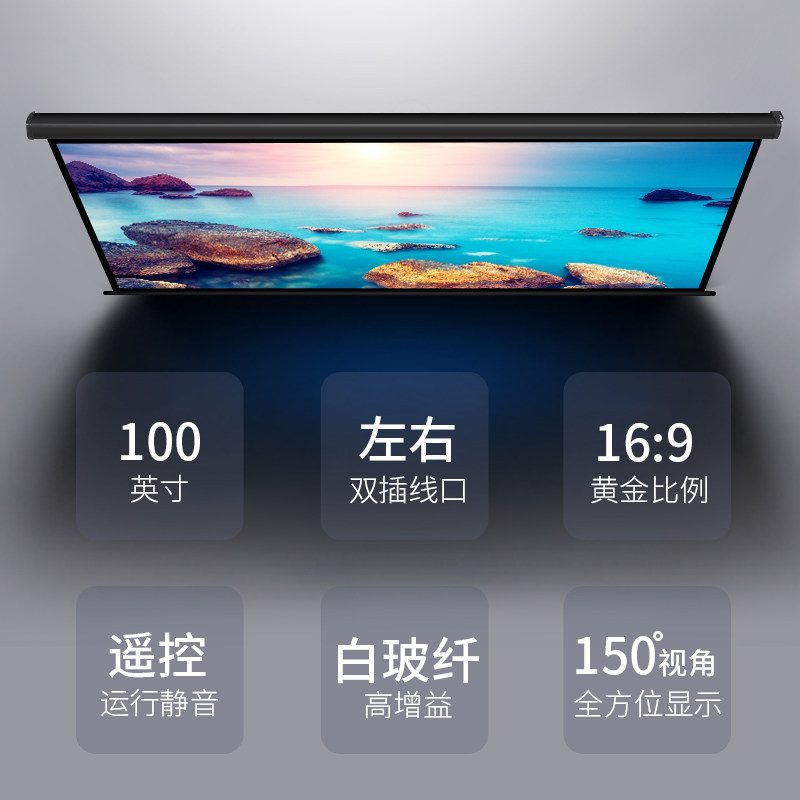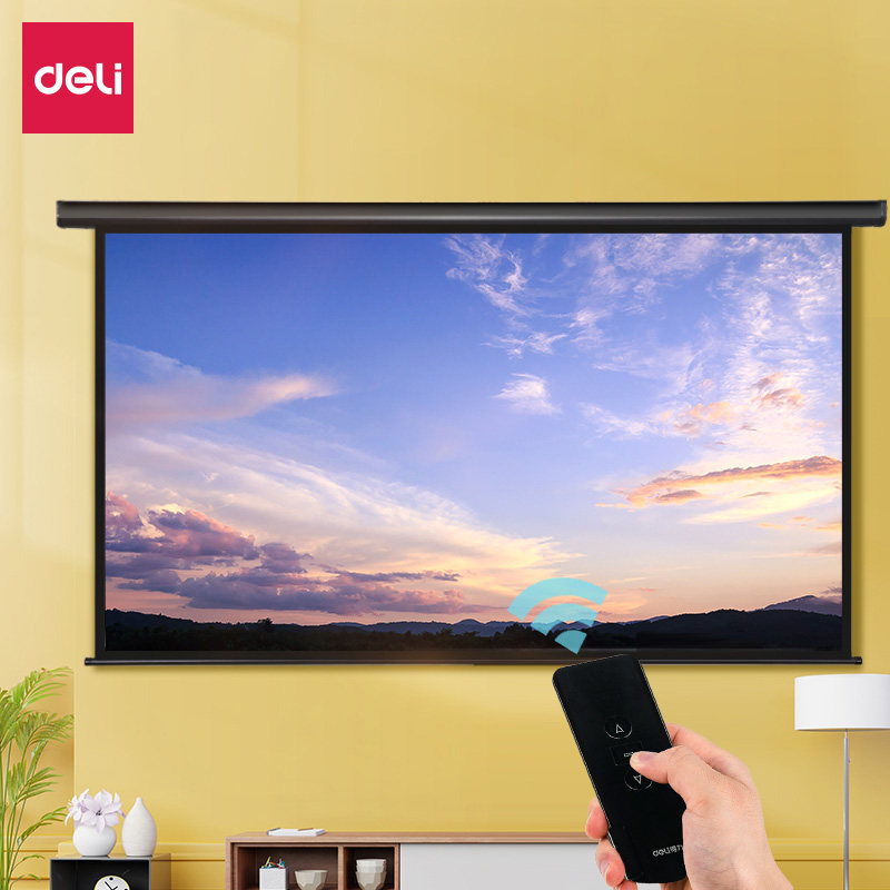 Deli screen 50450 electric remote control 100 inch 120 inch home theater projection white glass fiber projection screen left and right dual plug 16:9 projector screen