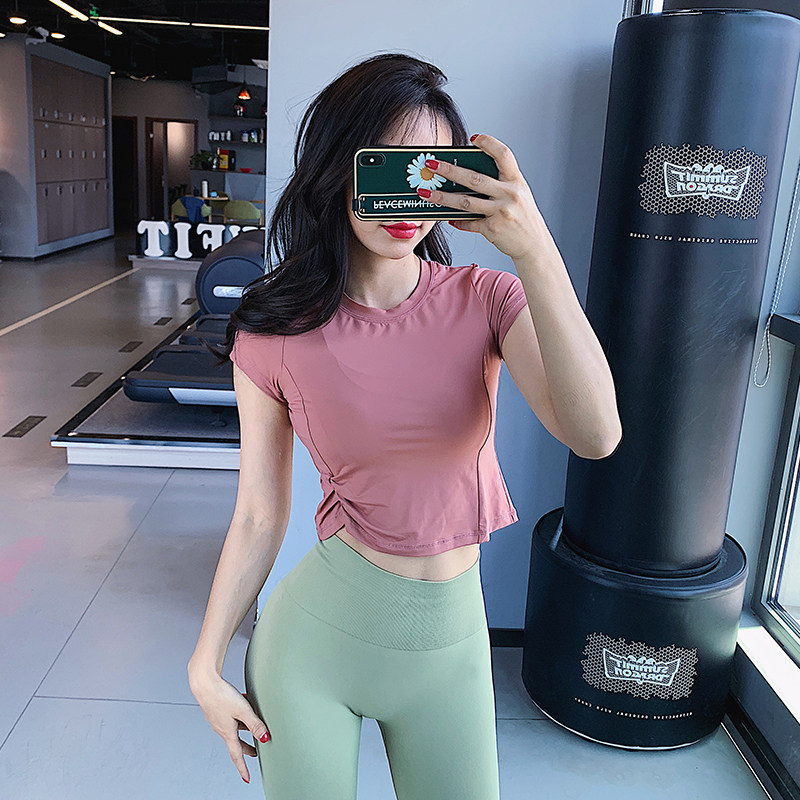 Run Kaka custom sexy kink umbilical sports t-shirt women's tight stretch yoga short-sleeved fitness clothes