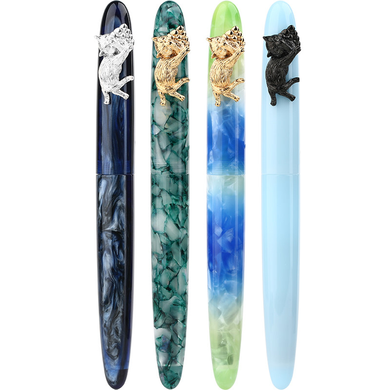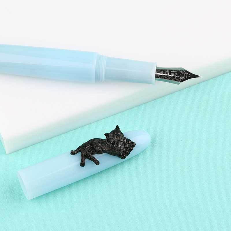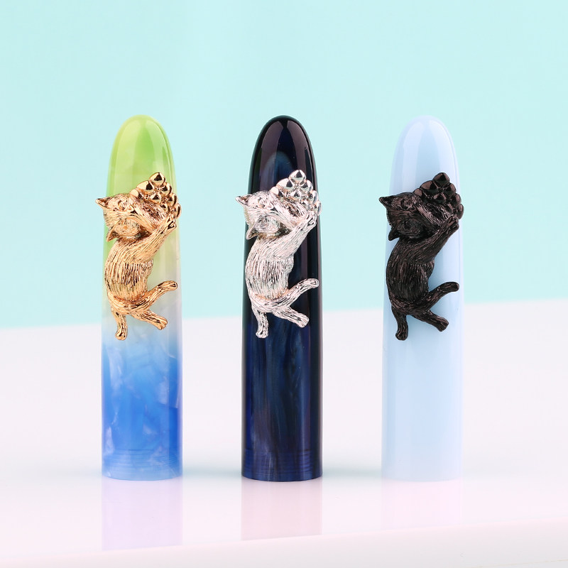 PENBBS-486 Type "Oh Cat" gold and silver black cat rotates on ink ink pen imported resin pressing coloured pointed cutter pen adult writing gift