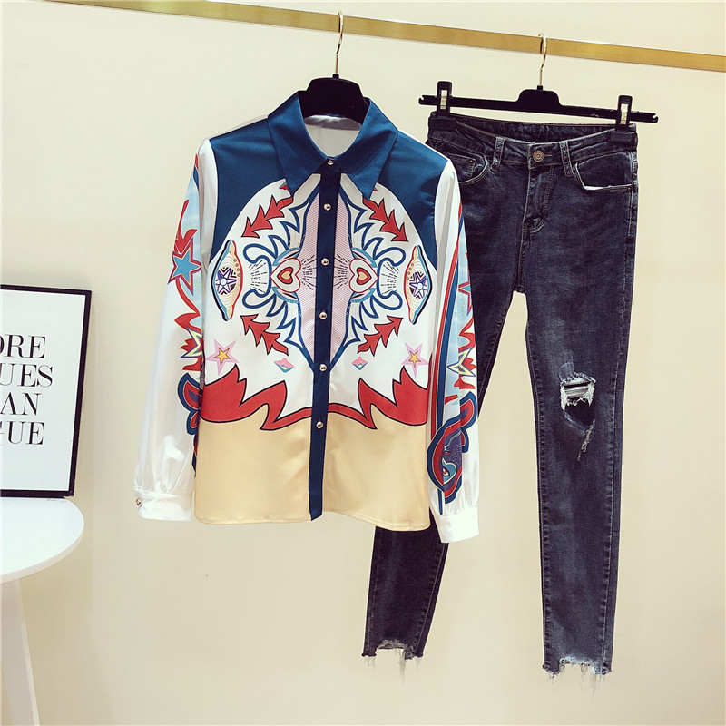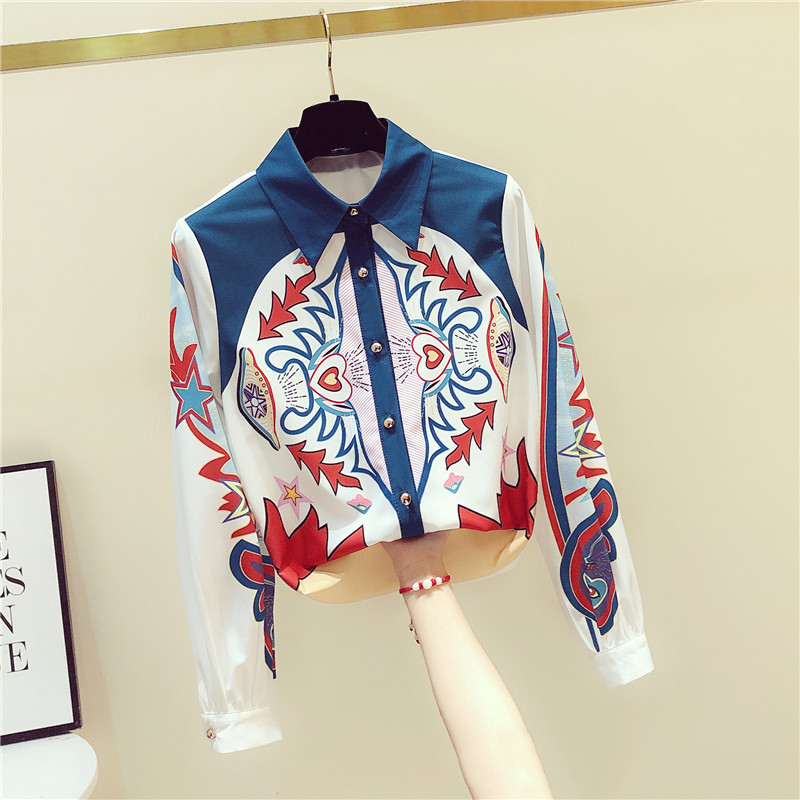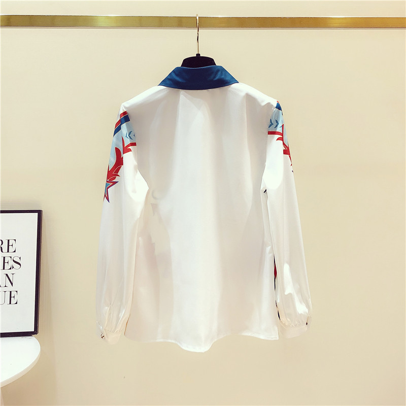 Korea 2021 Spring Autumn New Printed Snowspinning Shirt Woman Fashion Foreign Pie Design 100 Little Crowd 100 Hitch Long Sleeve Blouse