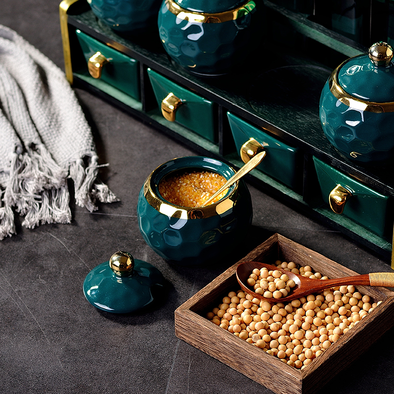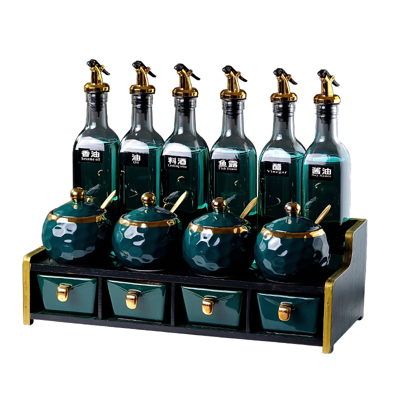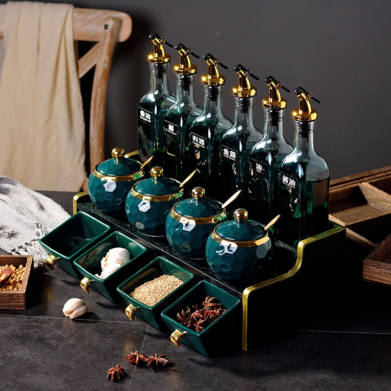 Light luxury home ceramic seasoning box glass seasoning bottle combination set kitchen seasoning jar seasoning jar shelf