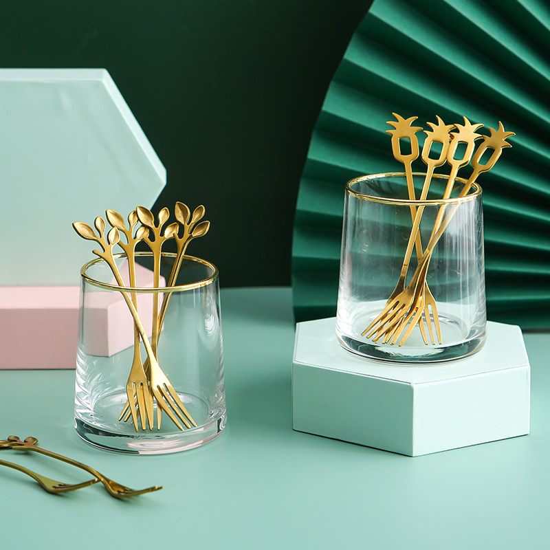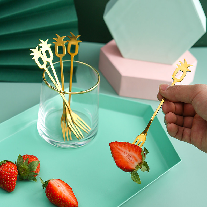 Stainless steel Fruit fork suit Creative cute Eurostyle small lavish cake fork Home Jar Fruit Sign Fruit Stick