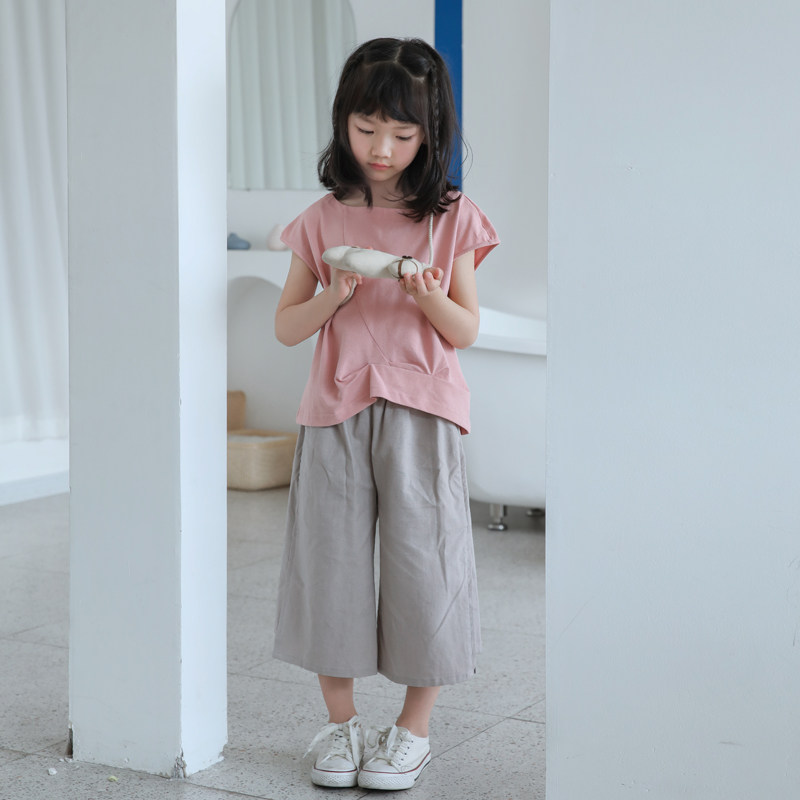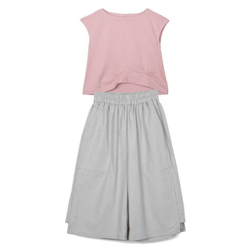 With Artisan Summer Clothing New Day Ensemble Art pro-son dress pure cotton pink T Flax Broadfoot Pants Suit-Taobao