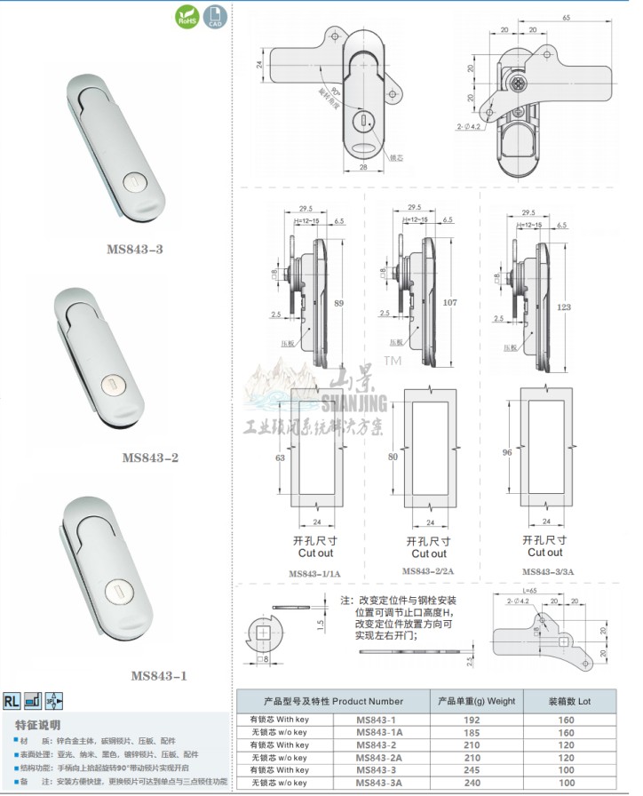 MS843-3 with lock zinc alloy black MS843-3 with lock zinc alloy nano MS843-3 with lock zinc alloy sub-light MS843-3A no lock zinc alloy black