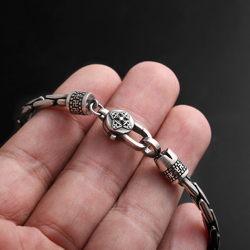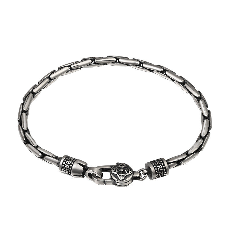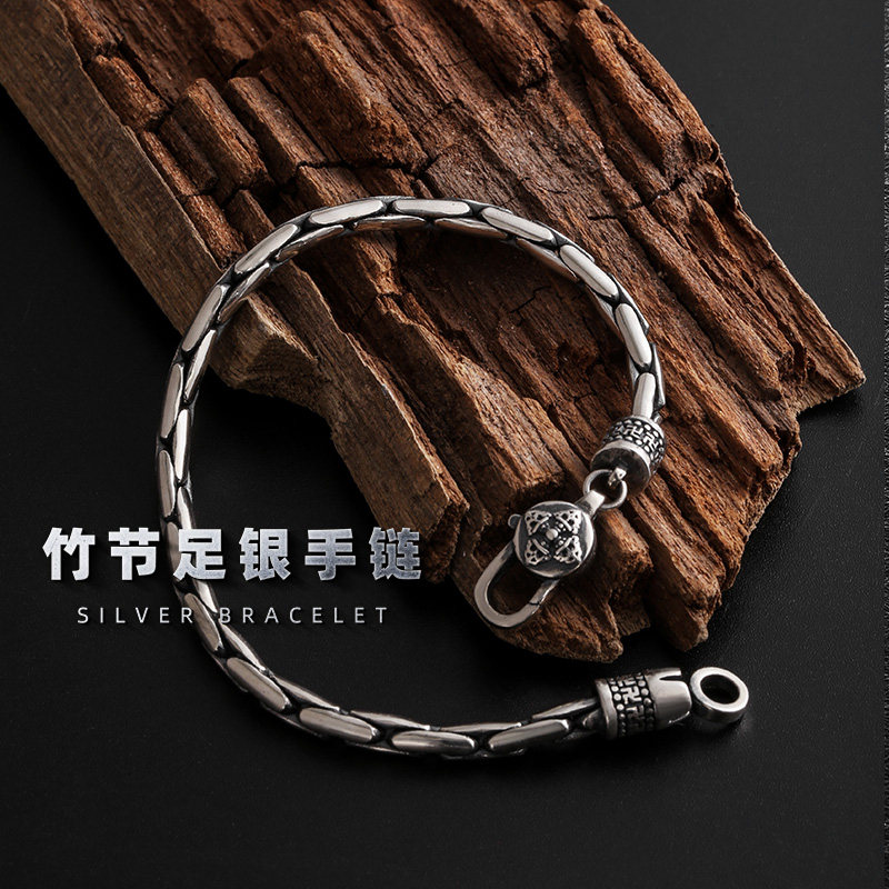 s925 Silver Bamboo King Kong Pestle Button Hand Sterling Silver Student Tide Simple Men's Personality Single Retro Thai Silver Women