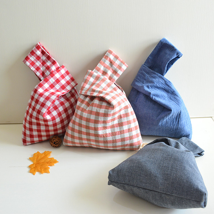 Wrist bag Japanese-style simple fabric mobile phone key knot tote bag pure cotton double-layer walking bag hand-carrying grocery shopping