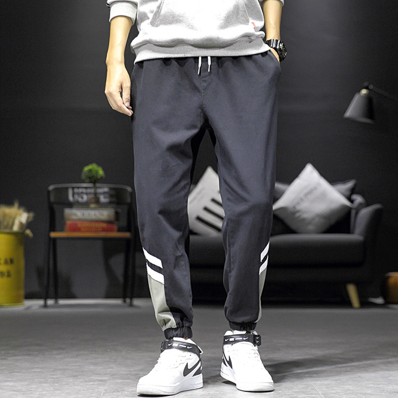 Patchwork casual pants for men summer plus fat plus size loose sports leg pants popular logo trend all-match pants Japanese series