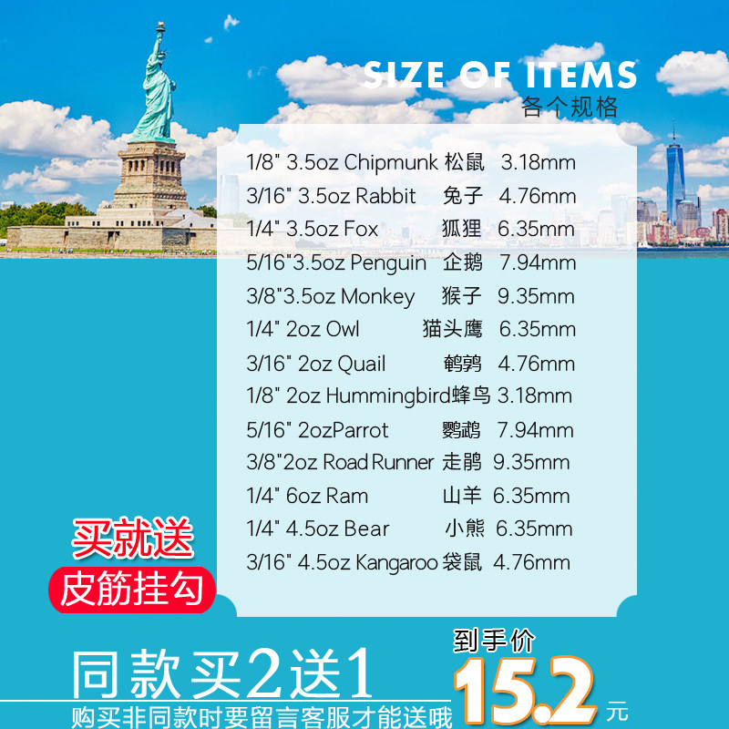 3 5oz 1 4 Domestic material Fox (send hook, shoot 2 get 1 free) 3 5oz 3 16 Domestic material Rabbit (send hook, shoot 2 get 1 free) 3