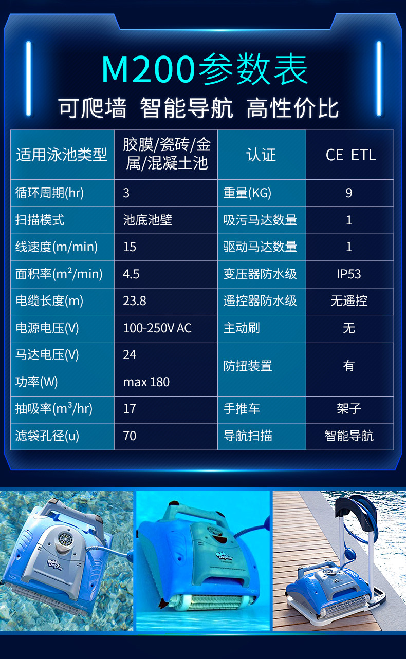 Dolphin automatic suction machine underwater robot dolphin M3 water ghost wall climbing vacuum cleaner M200 dolphin