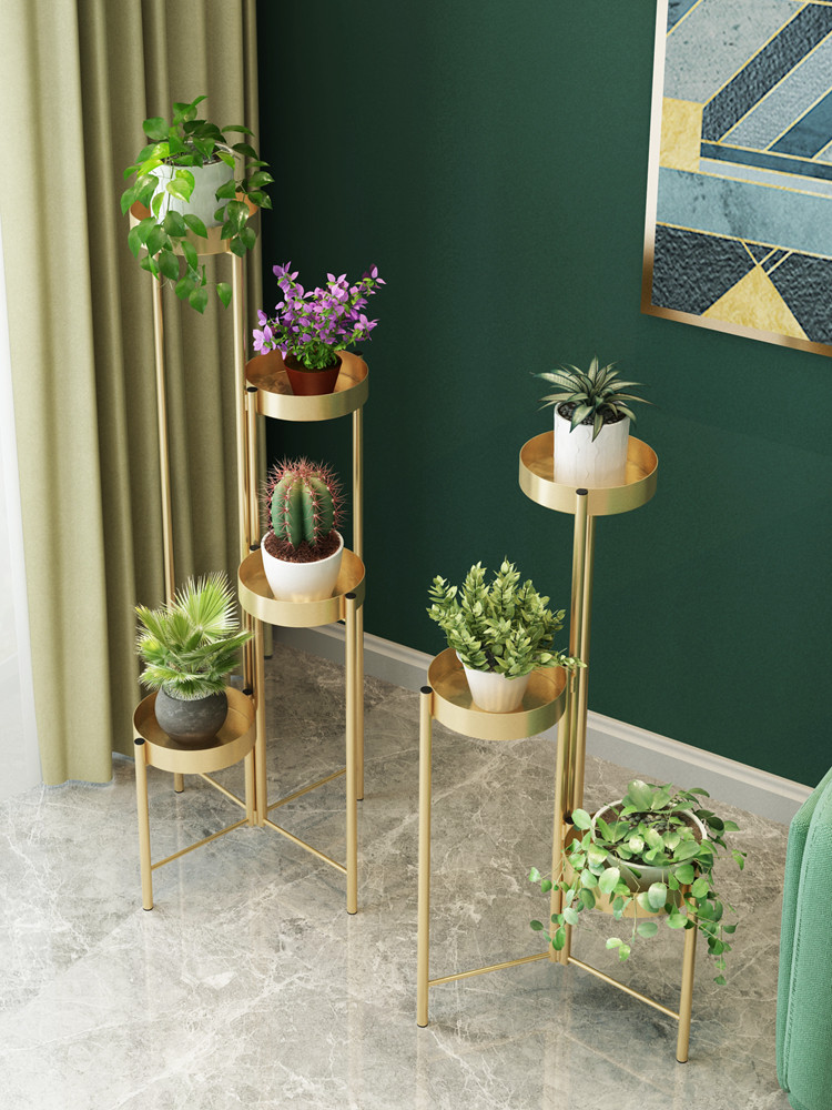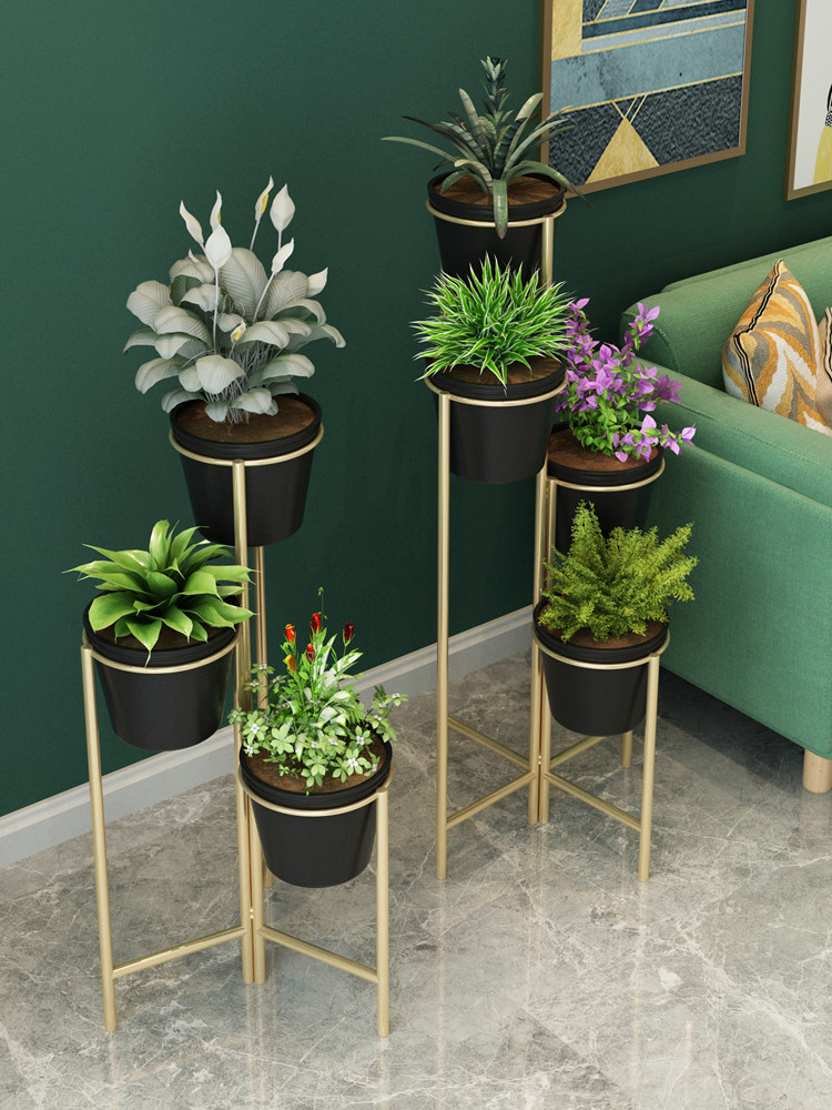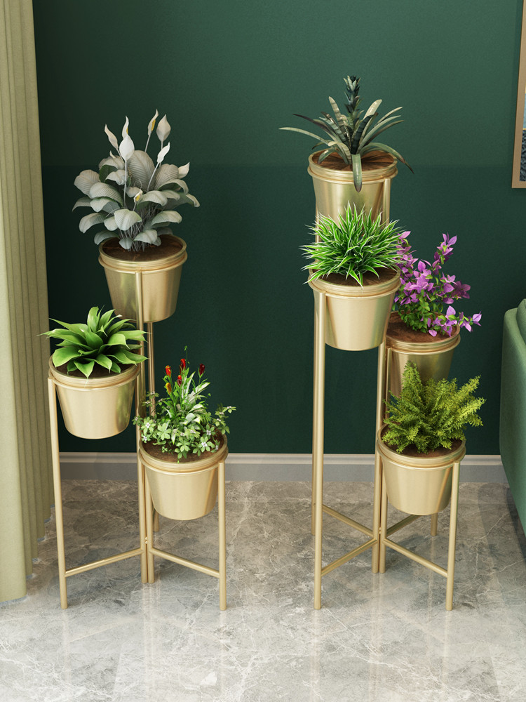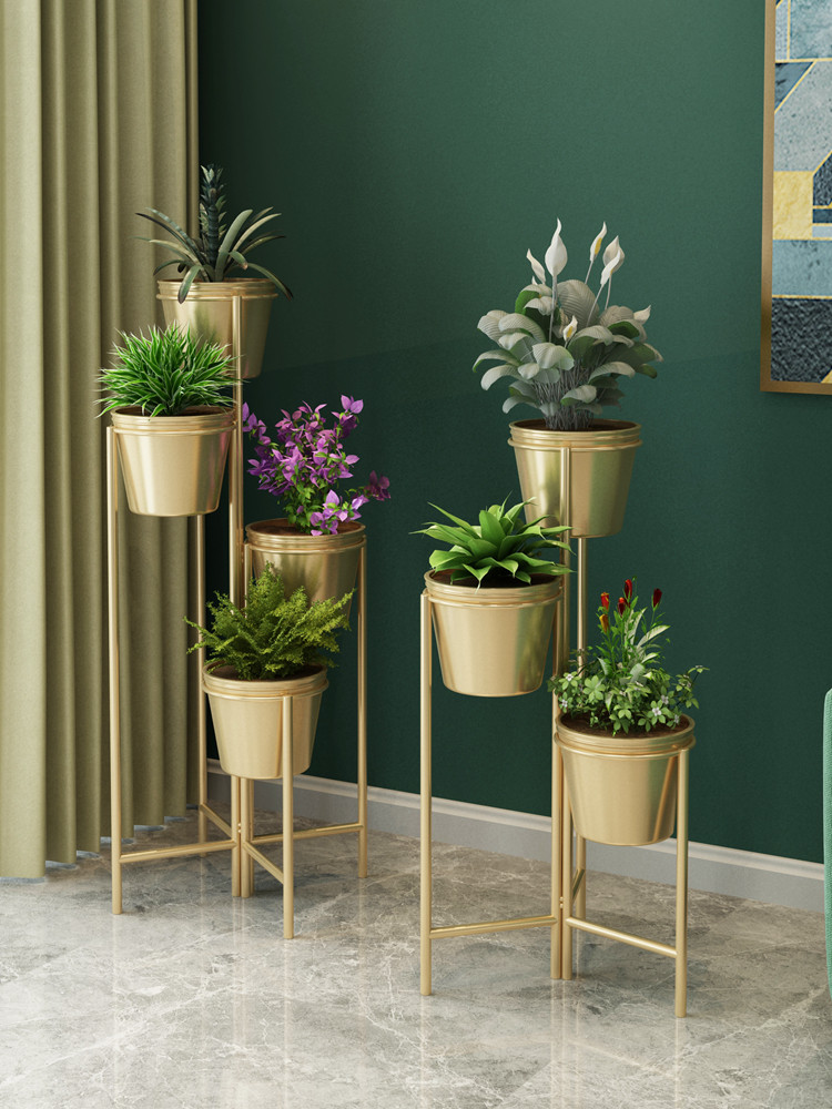 Nordic living room flower stand indoor flower stand wrought iron multi-layer floor-to-ceiling gold Ge flower stand modern balcony flower pot stand
