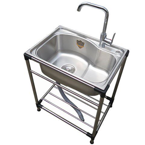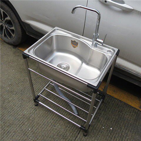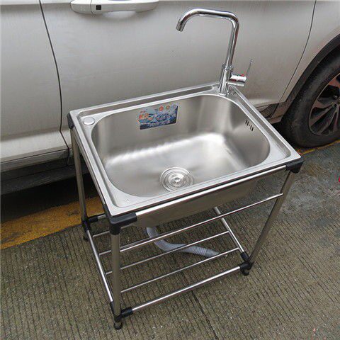 Simple solid stainless steel sink single sink with floor bracket package kitchen wash basin dishwashing basin with tap