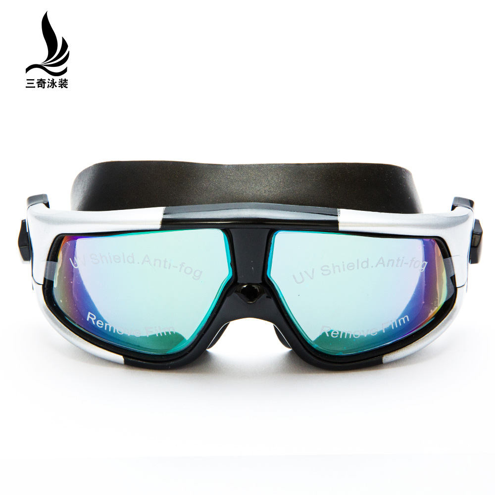 Three chic swimming goggles men's swimming glasses flat light high definition anti-fog large frame waterproof adult sports diving gear