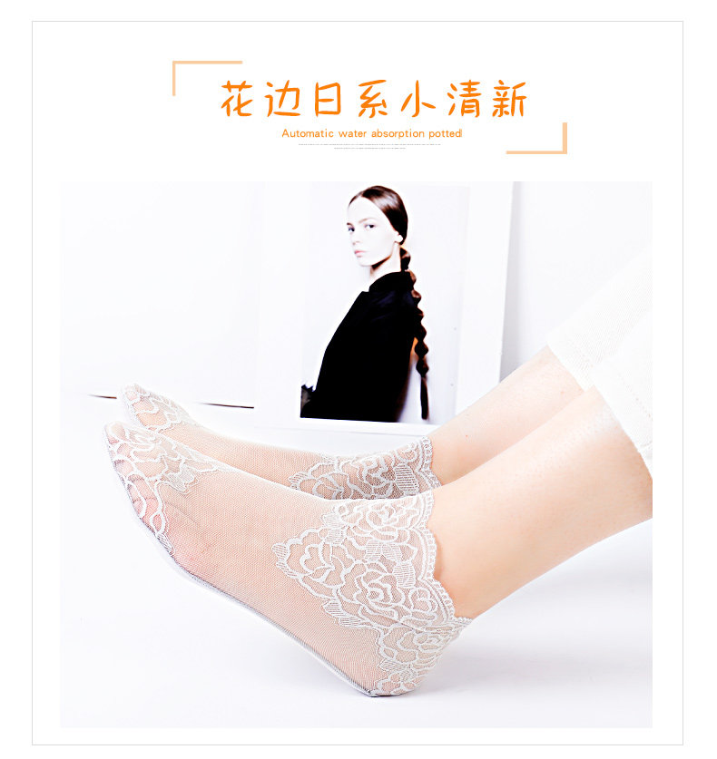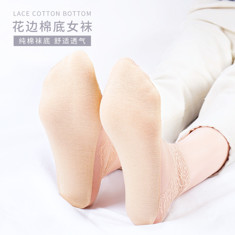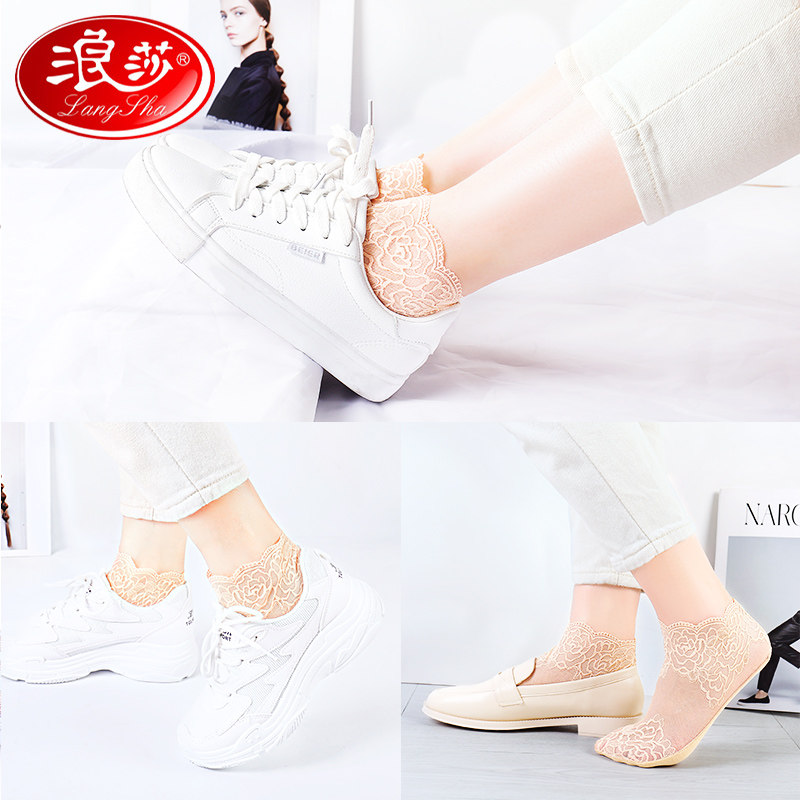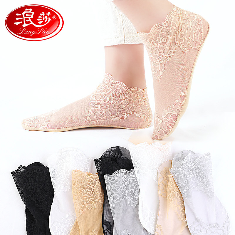 Langsha women's short stockings lace lace short stockings net yarn shallow mouth pure cotton bottom spring and autumn thin cotton socks summer
