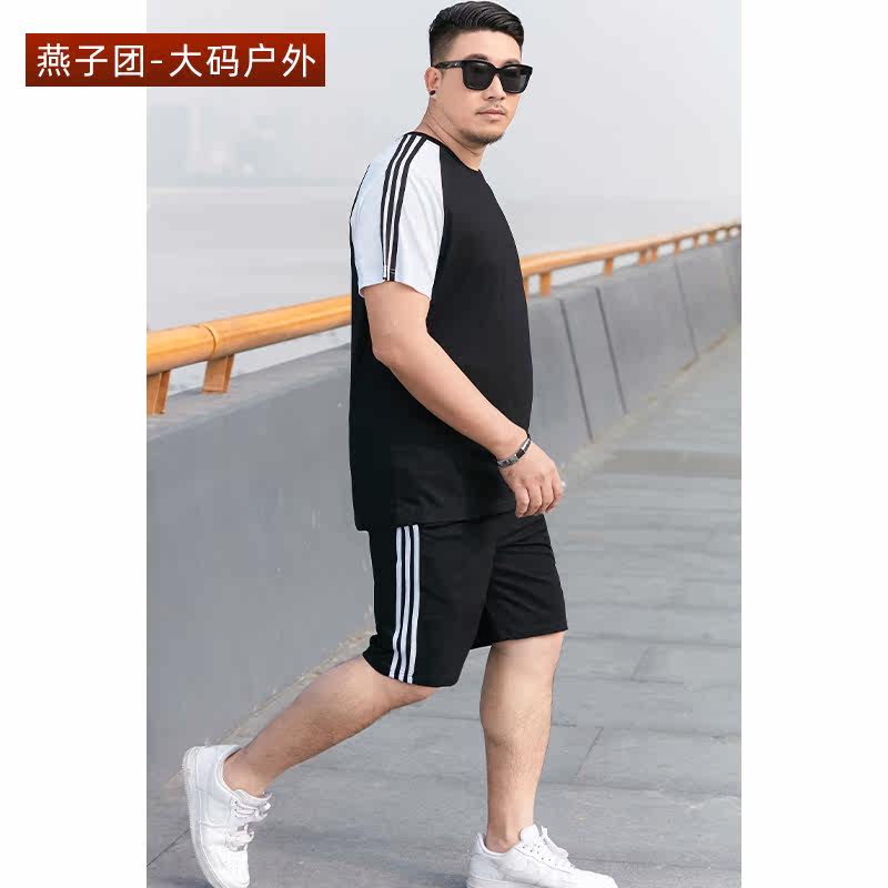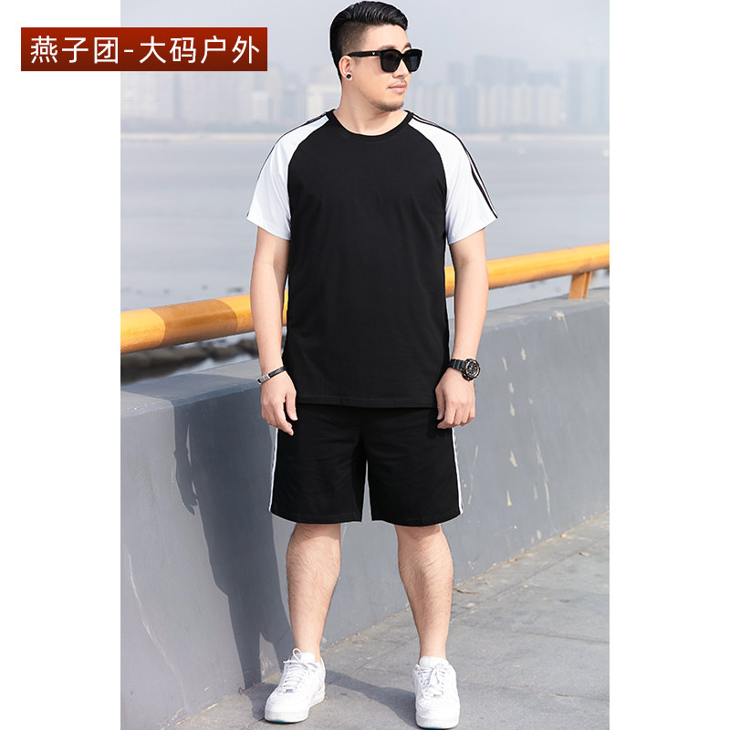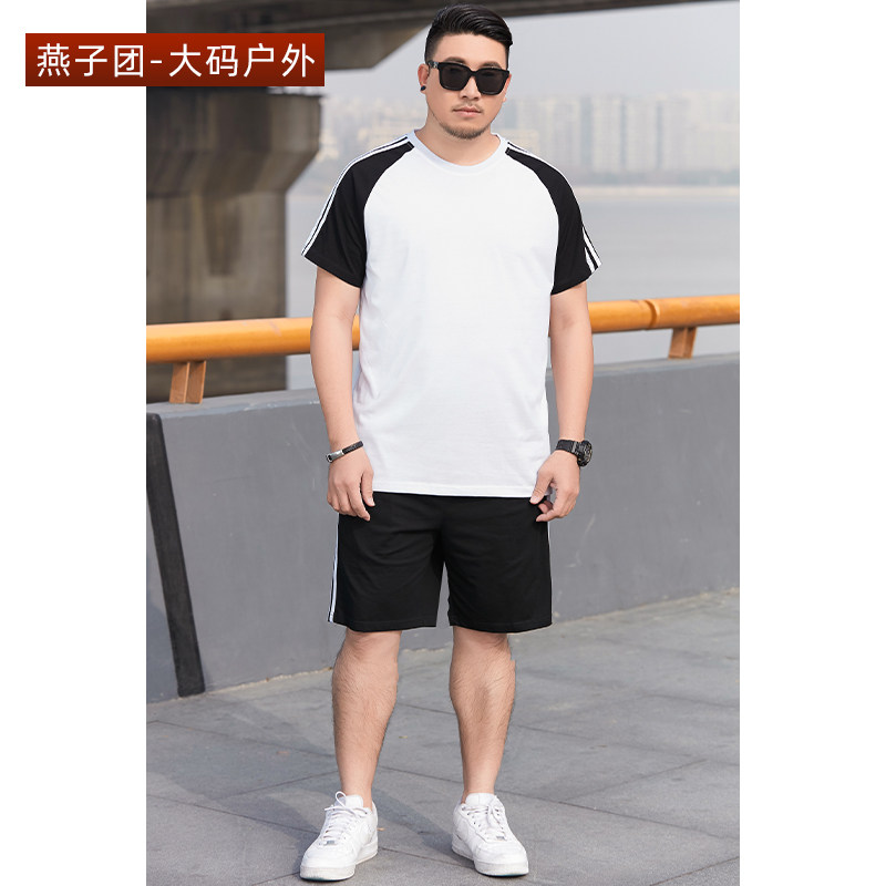 Sports suit men's fat man T-shirt two-piece suit plus fat increase fat short-sleeved shorts loose casual sportswear