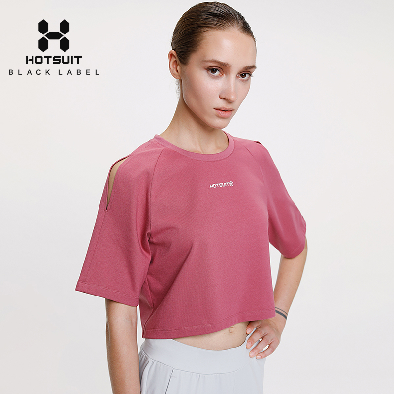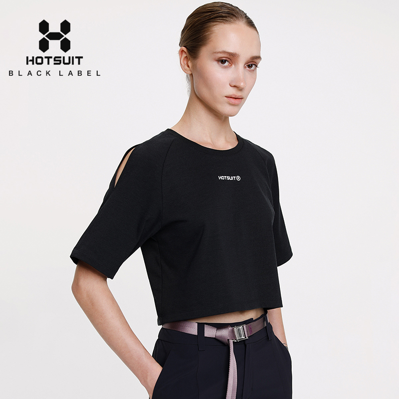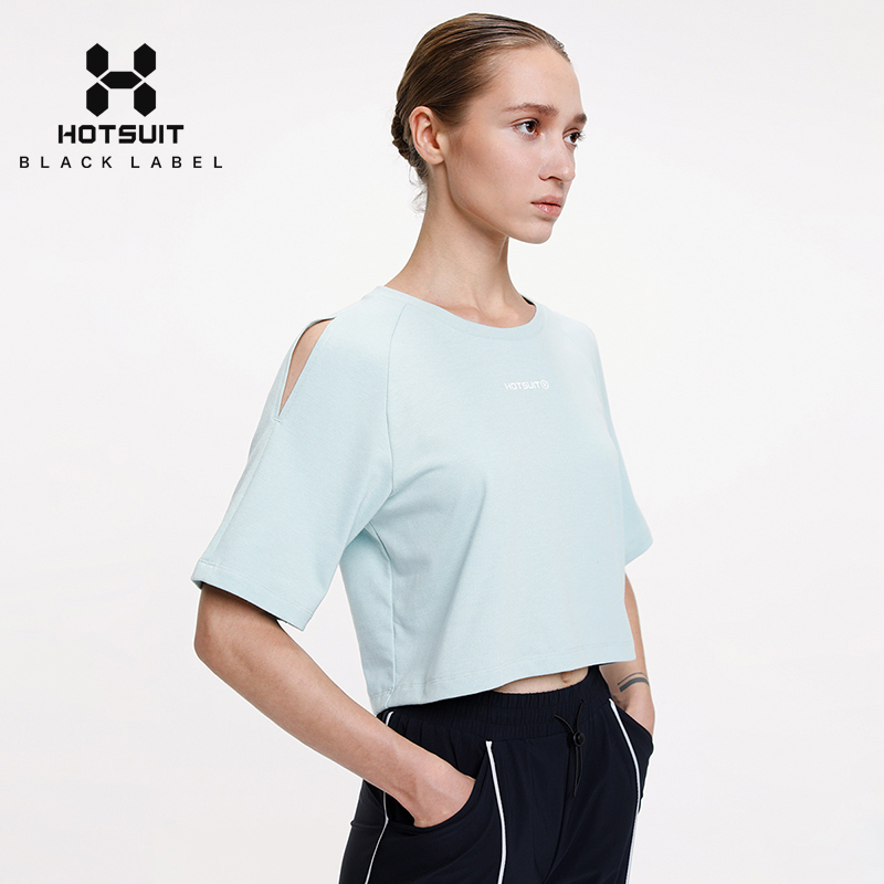 HOTSUIT post-show sports short sleeve T-shirt female reveal navel shoulder round collar summer outdoor running bodysuit woman