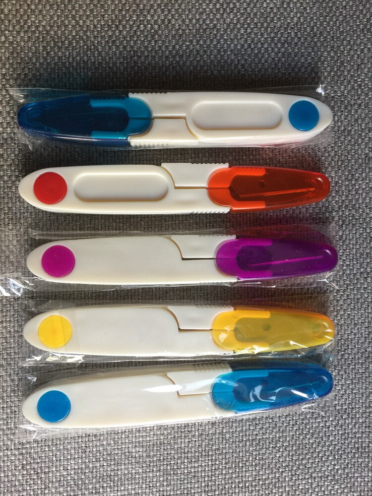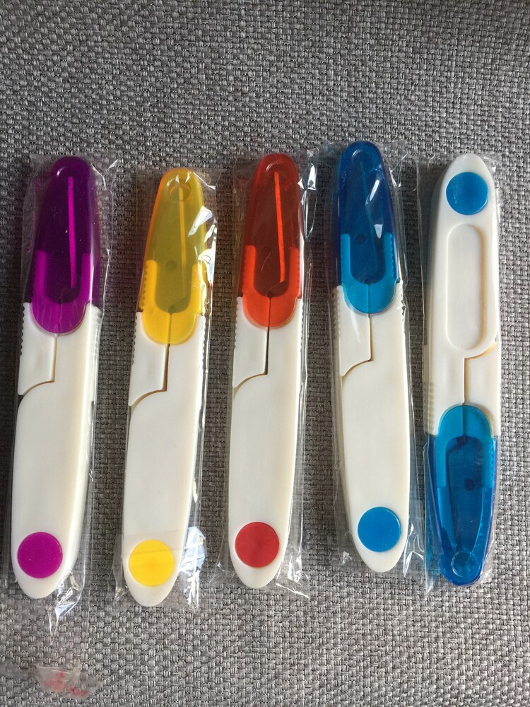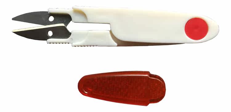 Cut of the cut of the rubberized fabric by the small scissors