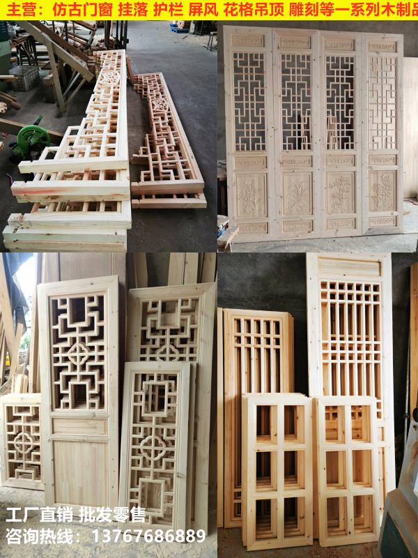 Farmhouse homestay wooden house solid wood antique doors and windows partition screen hollow porch lattice anti-corrosion wood gazebo hanging