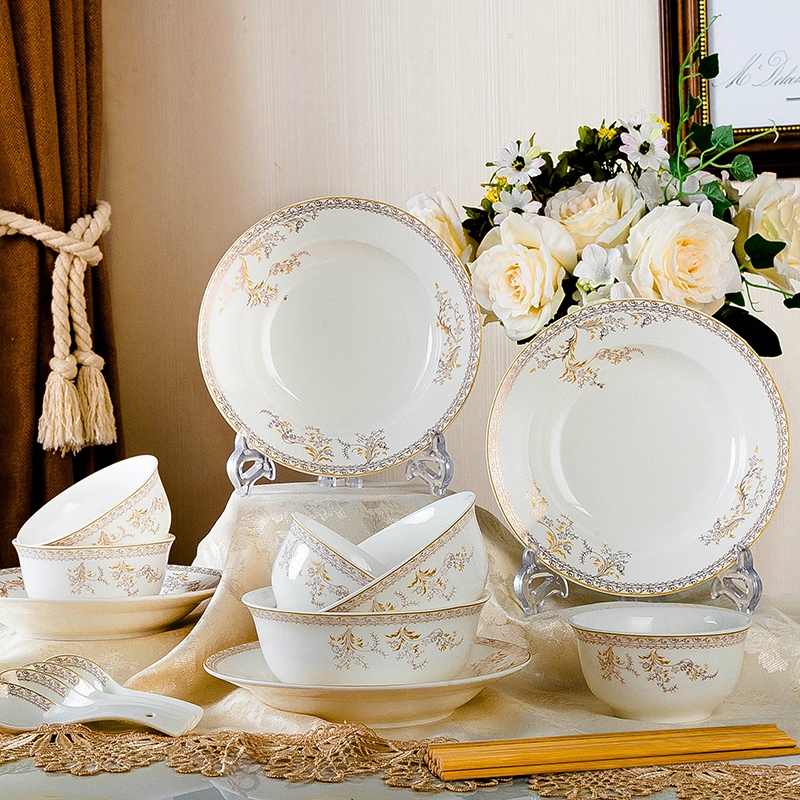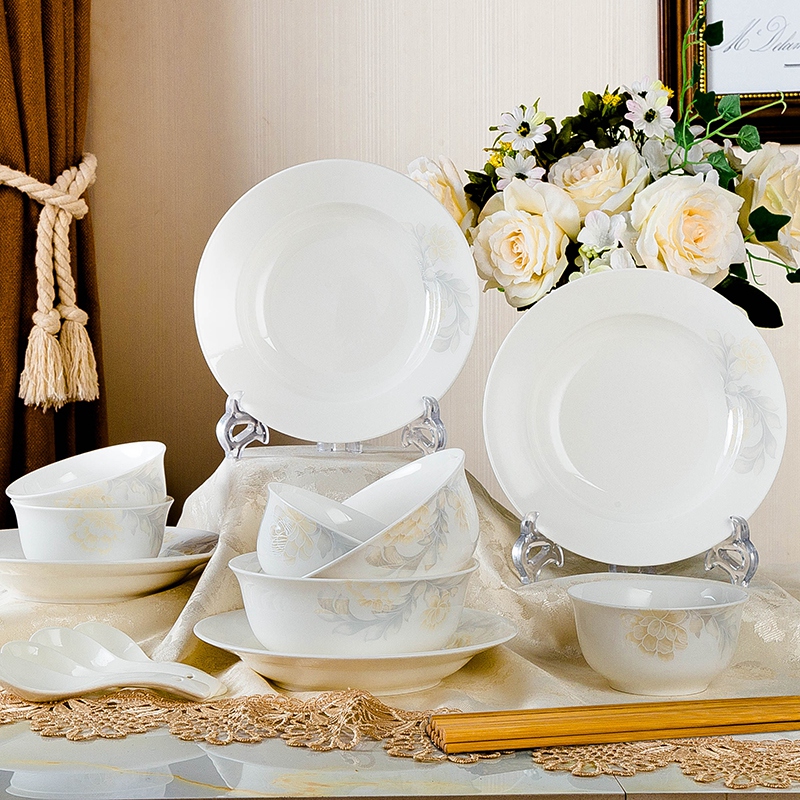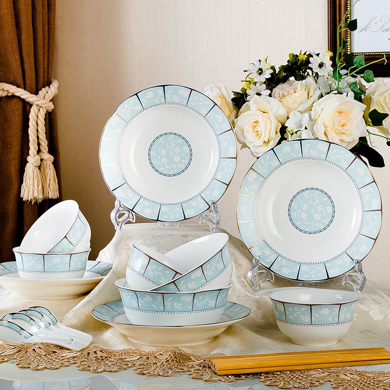 Home 18 Head dishes Dish Suit Bone porcelain Bowl Tray Cute Bowl Dining Bowl 4 People combine cutlery European style Chinese brief