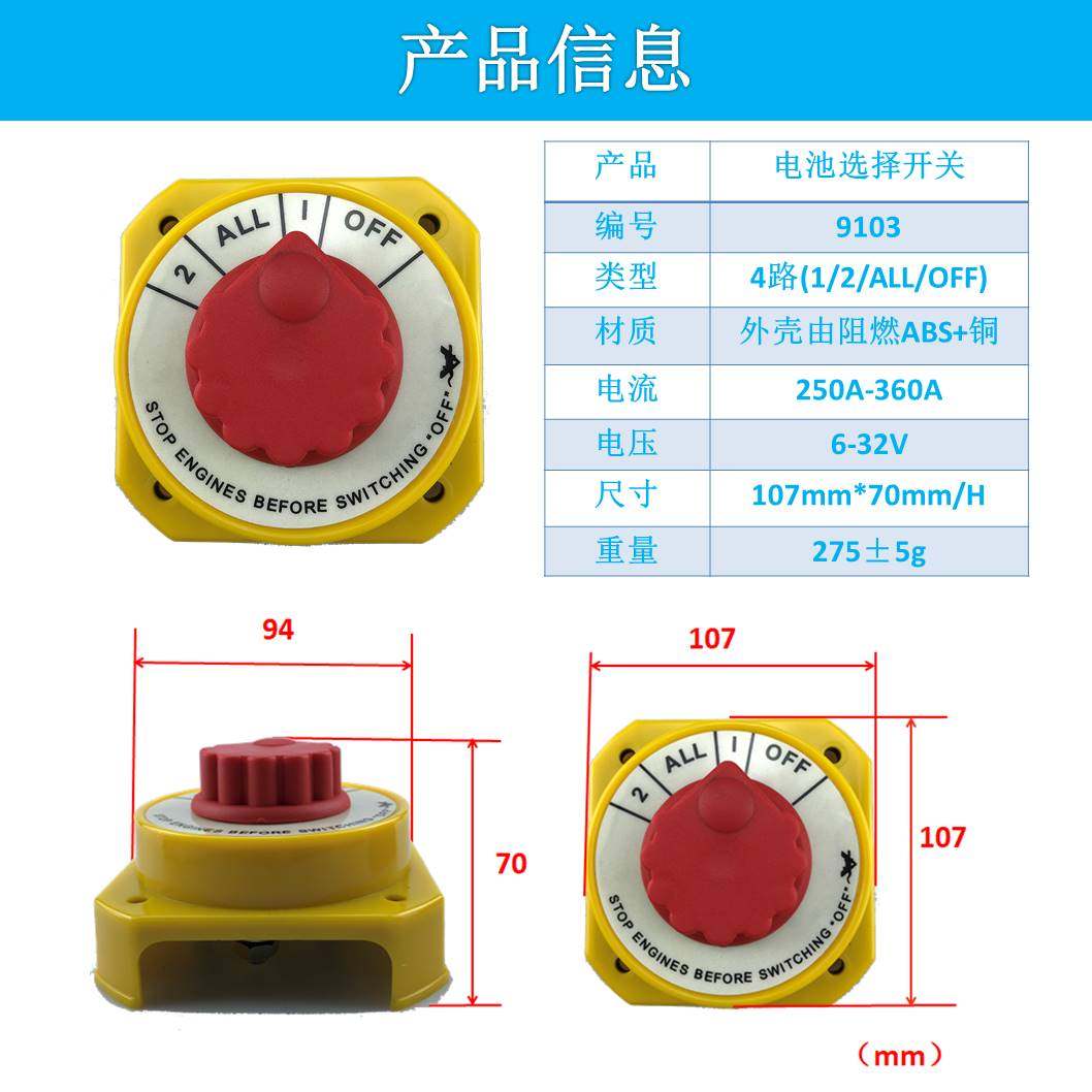 High current yacht battery switch Power cut off switch Car battery power protection knob switch