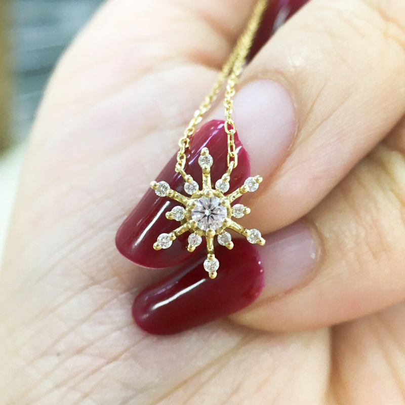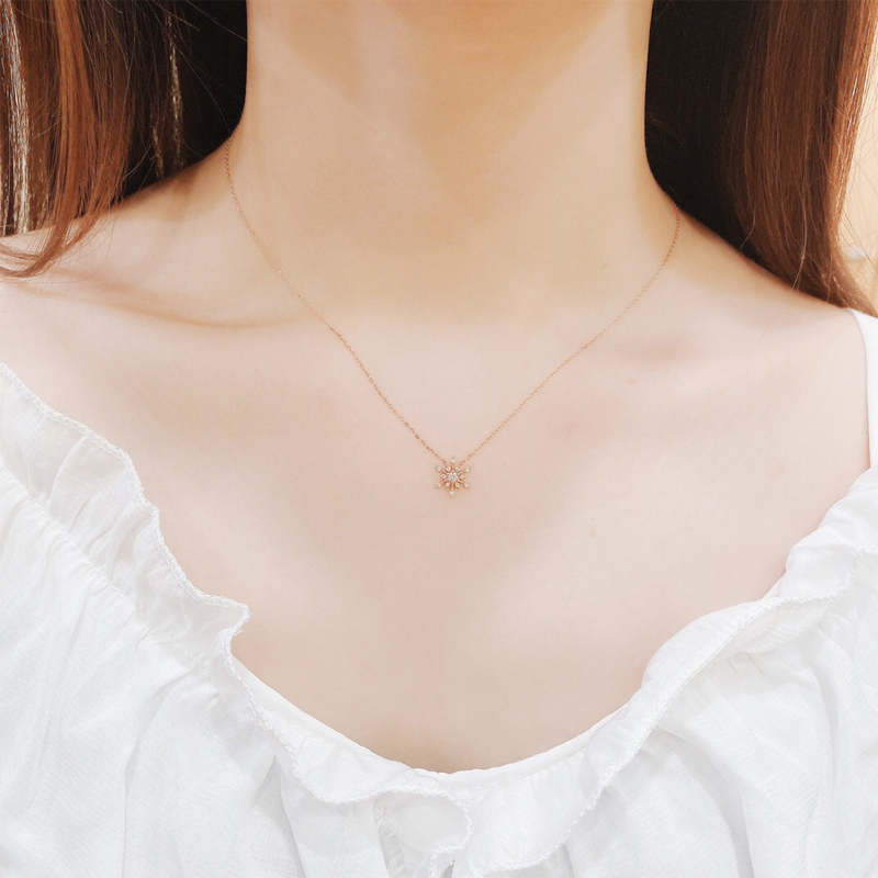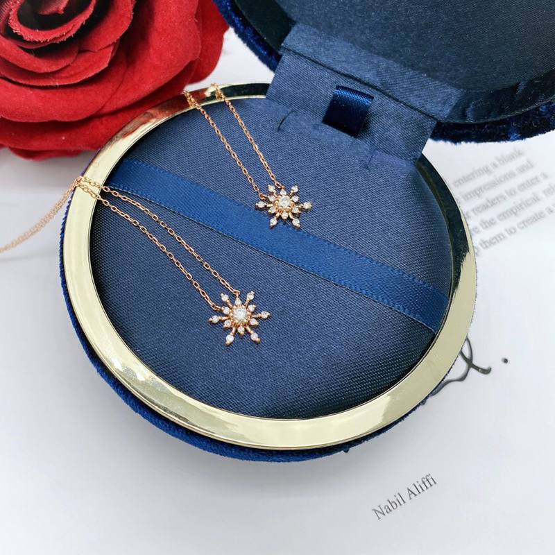 18k Gold Snowflake Diamond Pendant Female Group Diamond Necklace One Carat Single Diamond Clavicle Chain