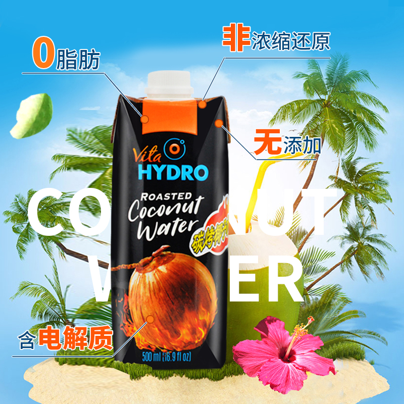 Vietnam imports Haizhuo HYDRO100% carbon roasted coconut water 500ml*6 bottles of fresh coconut juice juice drink