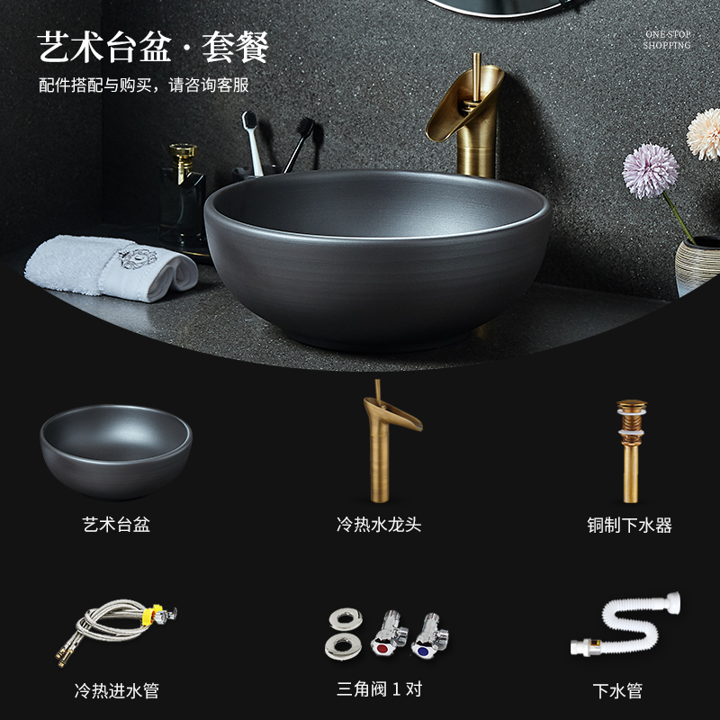Adapted Art pure black circular ceramic table basin toilet retro-faced balcony wash pool household
