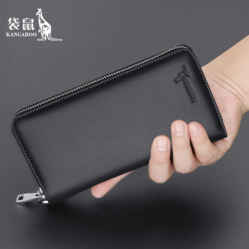 Kangaroo Wallet Men's Long Genuine Leather Handbag 2021 New Fashion Brand Leather Wallet Clutch Bag Cowhide Zipper Clutch Bag
