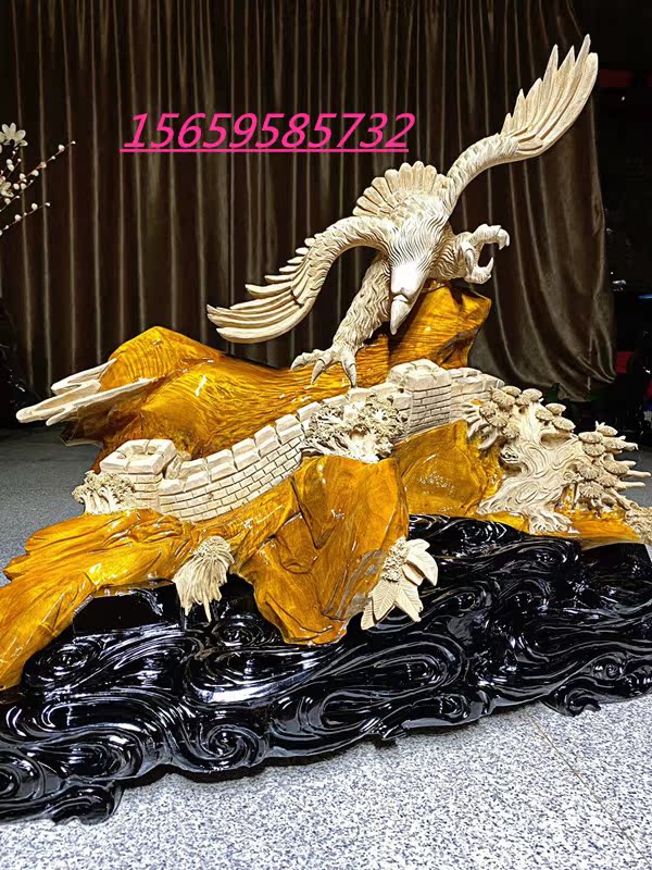 Golden silk nanmu carving eagle ornament ebony ornament flower bird landscape animal craft gift ornament gloomy wood root carving Guanyin