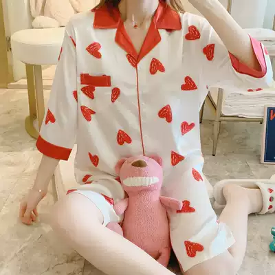 Ice silk nightdress female spring and autumn sweet cute loose sexy large size silk shirt pajamas summer thin home clothes