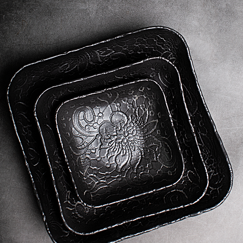 Quadrilateral black carved disc (large number) Quartet black carved flower disc (trumpet) quadrilateral black carved flower disc (medium number)