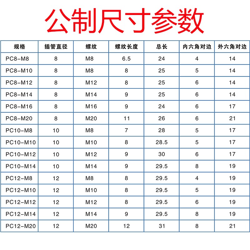 M8-PC8 (100 only) M8-PC10 (100 only) M10-PC8 (100 only) M10-PC10 (100 only) M10-PC12