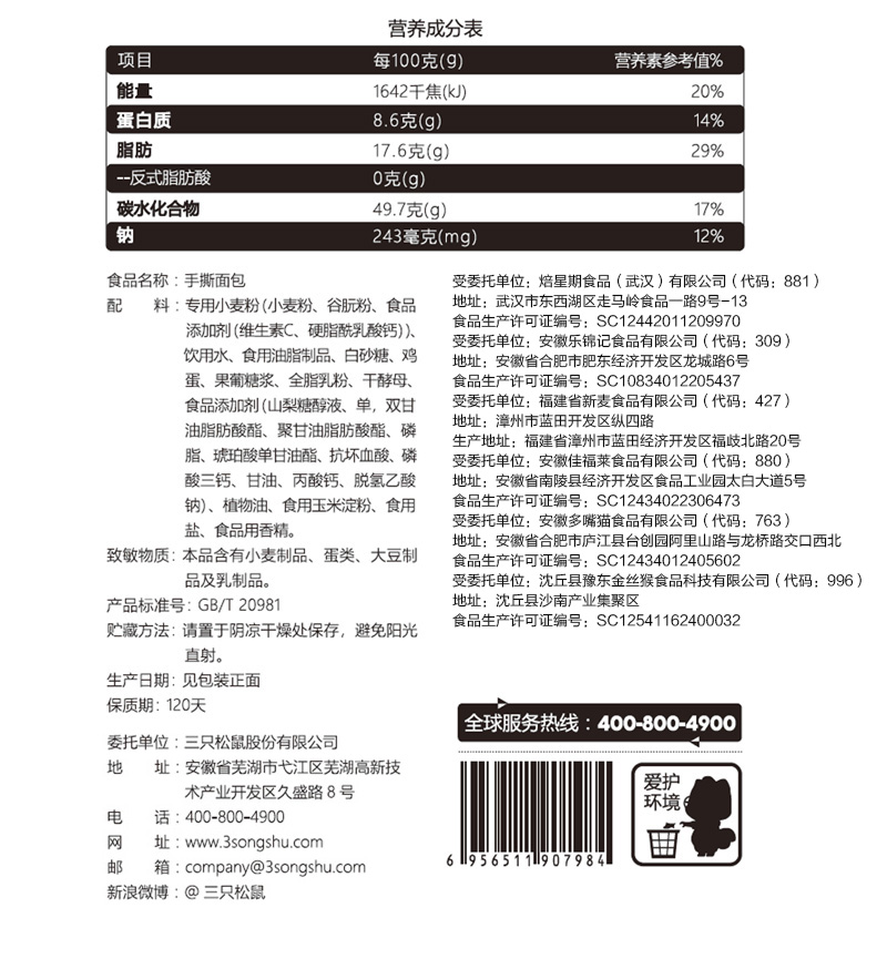 Wheat flour Fresh eggs White sugar Shortening Margarine Whole milk powder Maltose syrup Yeast food additives, etc See the page or specific product packaging for details