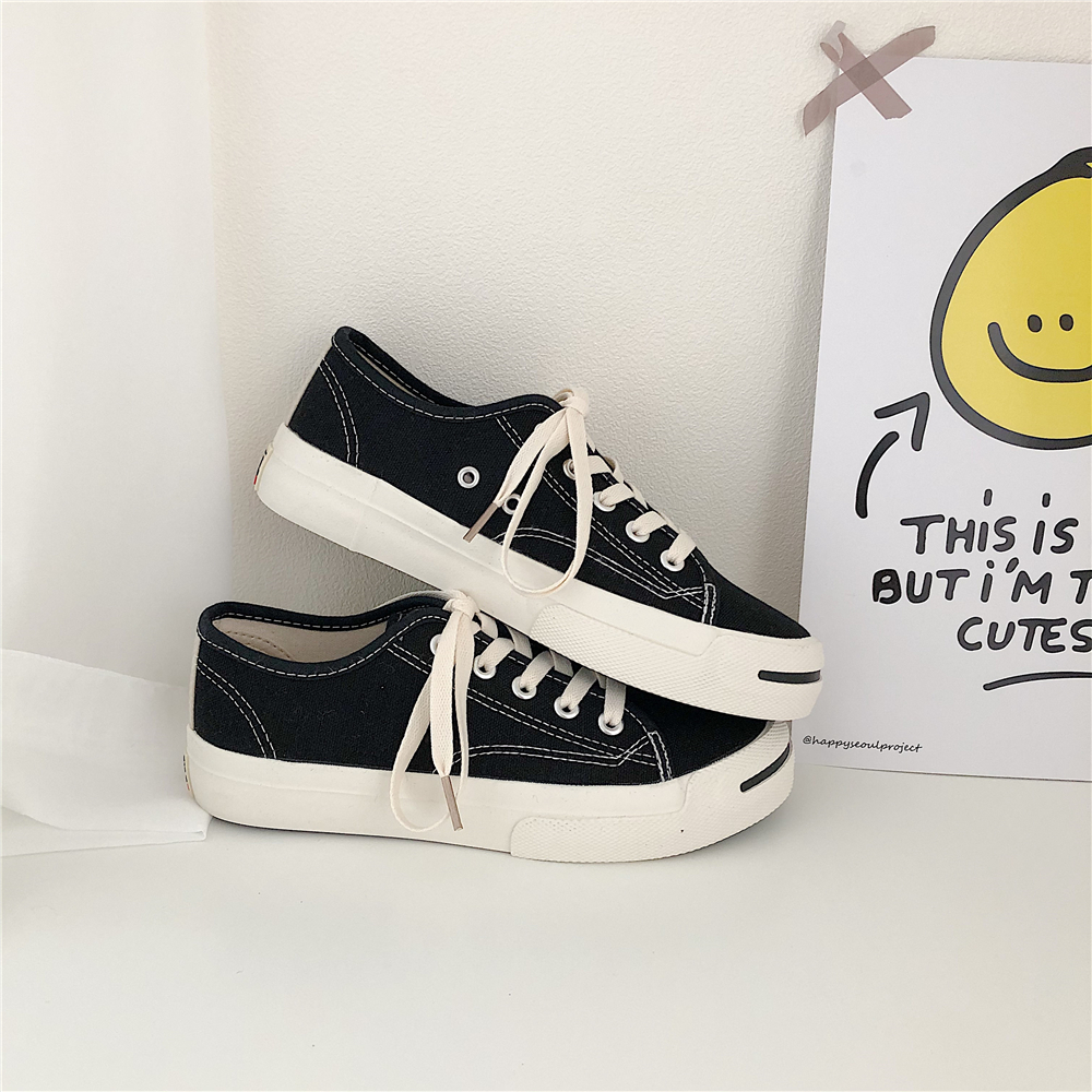 Jiang Zhishu 2020 new Korean ins net red canvas shoes women's black low-cut sneakers students all-match shoes